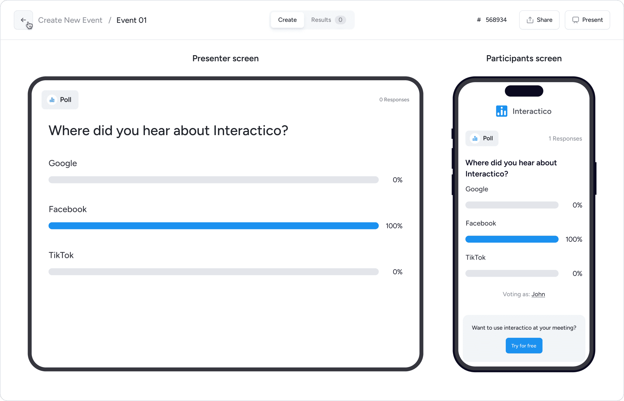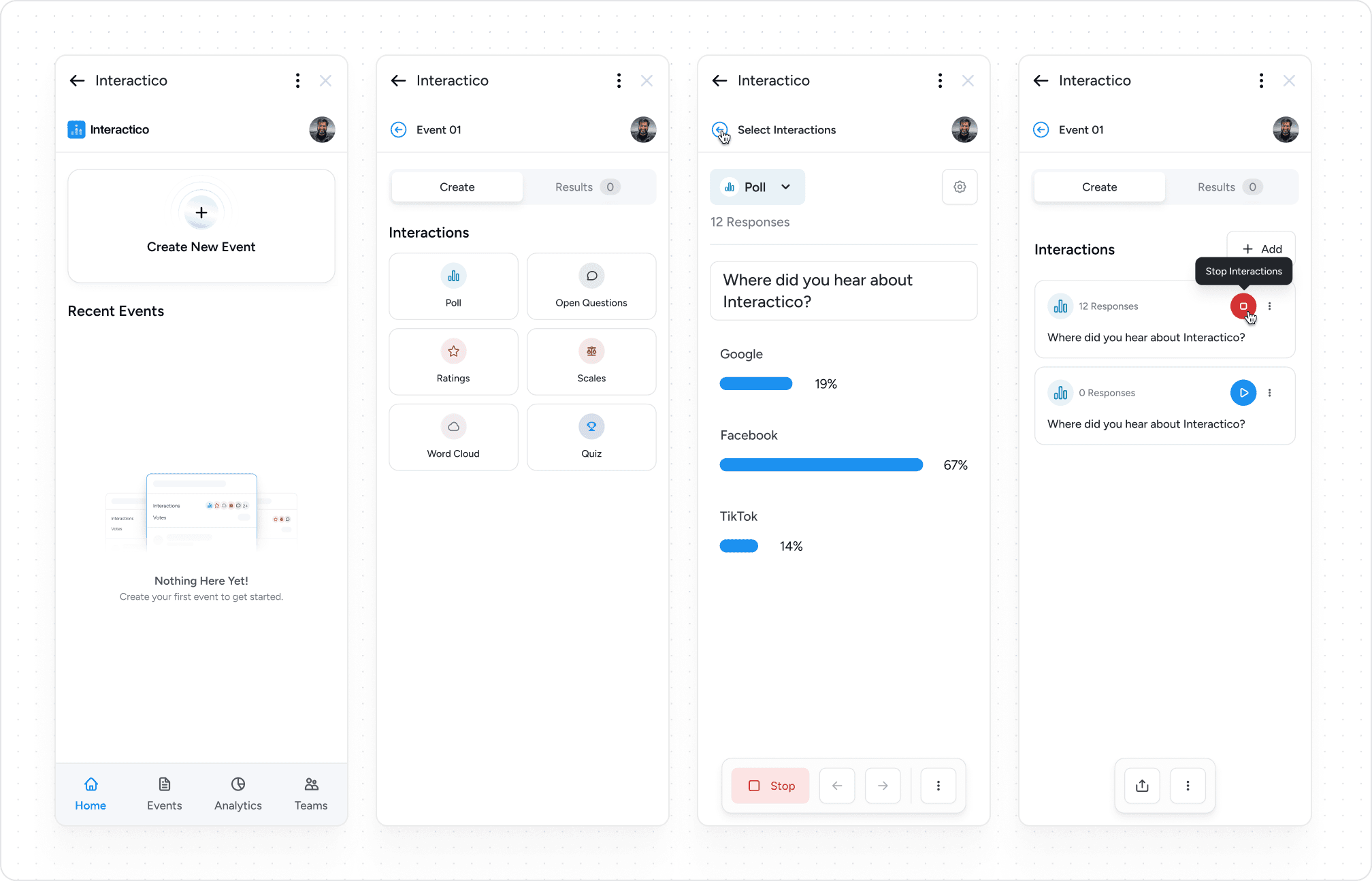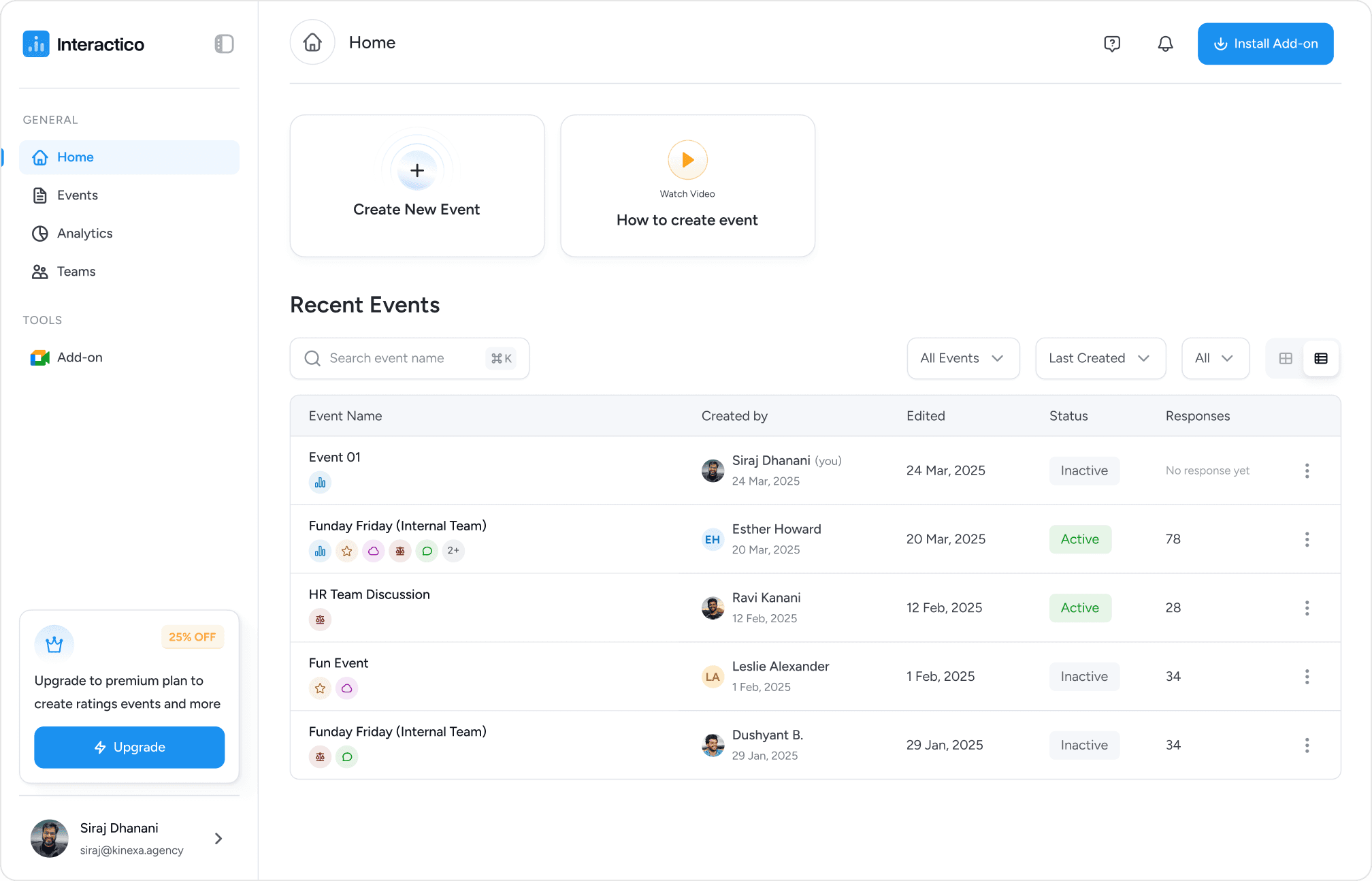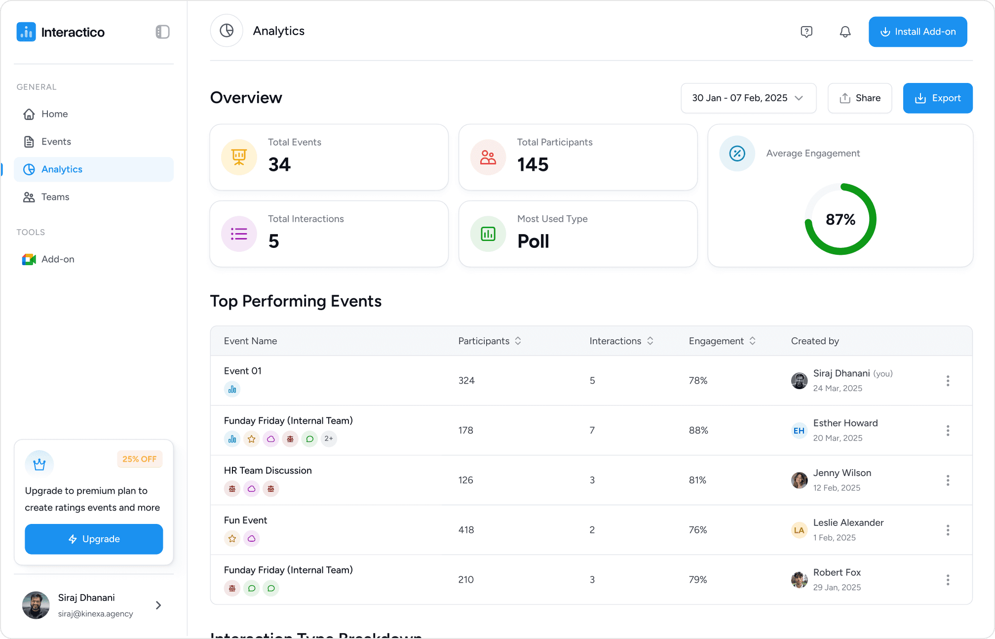 For Interactico, we crafted the brand identity, website, and end-to-end product design, from the Google Meet plugin to the full web app.
